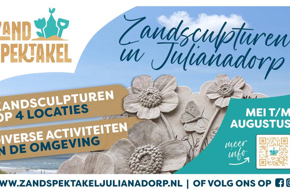 Vanaf mei tot eind augustus verandert Julianadorp in een openluchtgalerie van zand. Op vier bijzondere plekken in het dorp staan indrukwekkende zandsculpturen. Elk kunstwerk vertelt een verhaal. Over het leven aan zee. Over tulpenvelden, het koningshuis, of de vrijheid van een stranddag zonder tijd.