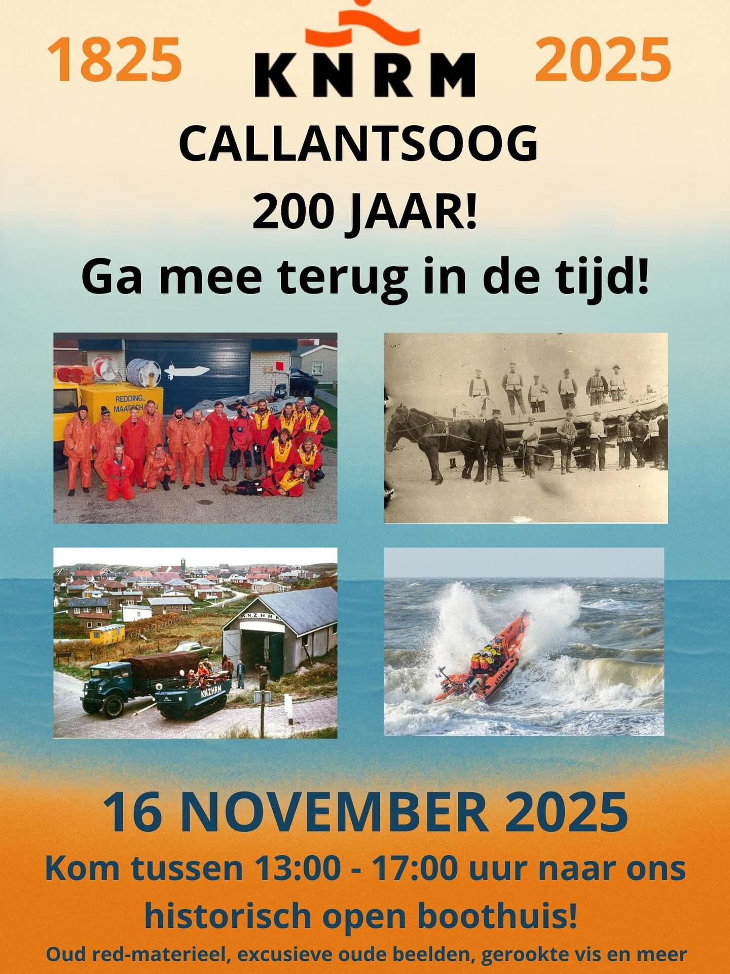 Am 16. November feiert die Königlich-Niederländische Rettungsgesellschaft (KNRM) ihr 200-jähriges Jubiläum. In Callantsoog wird dieser besondere Moment im örtlichen Bootshaus gefeiert, wo Freiwillige, Spender, Einwohner und andere Interessierte herzlich eingeladen sind, gemeinsam auf zwei Jahrhunderte Rettungsarbeit auf See zurückzublicken.