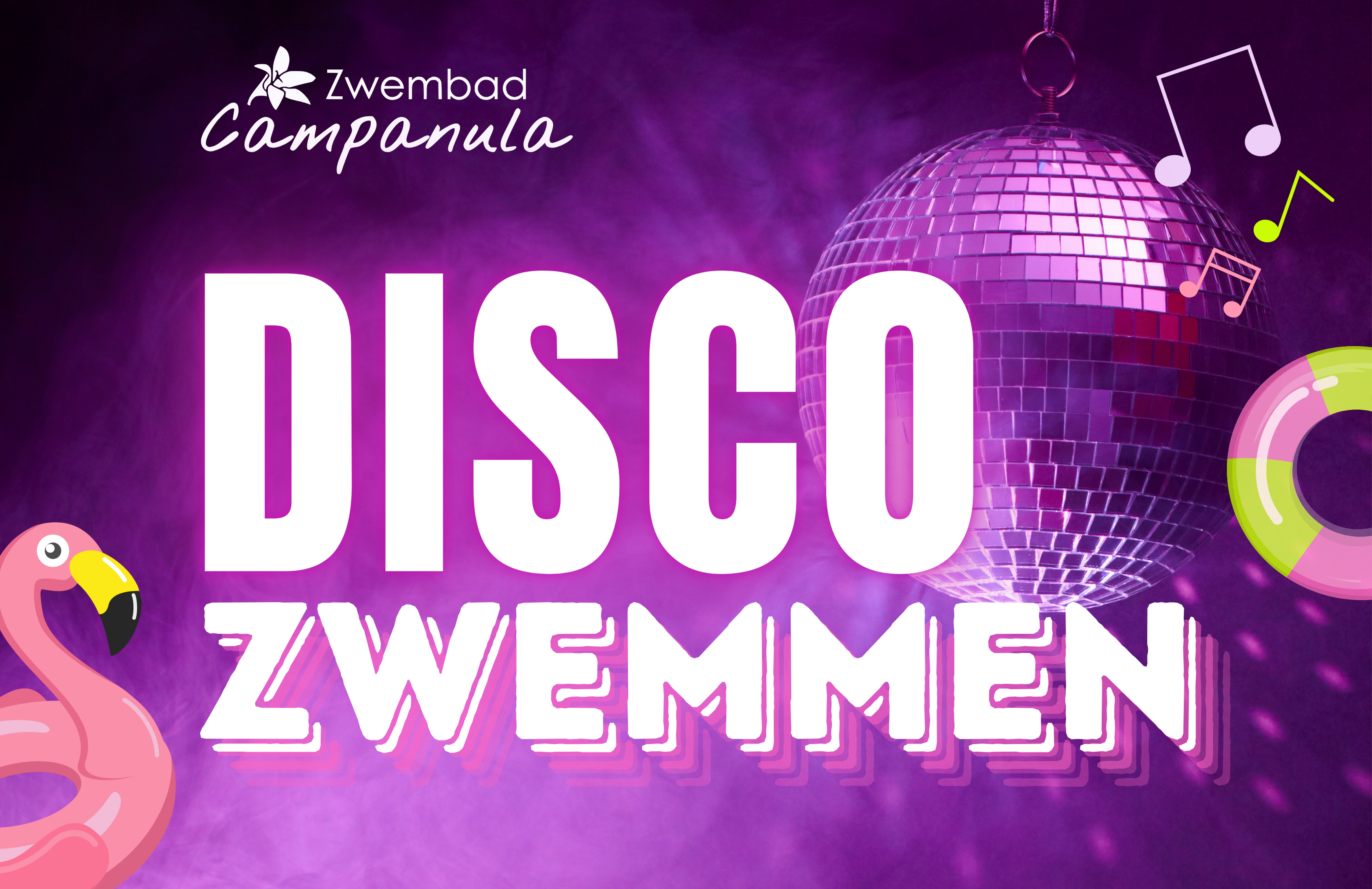 Lust auf eine spritzige Party? Dann komm zum Disco-Schwimmen im Schwimmbad Campanula! Wir verwandeln das Schwimmbad in eine richtige Disco: mit coolen Beats, bunten Lichteffekten und vor allem viel Wasserspaß!